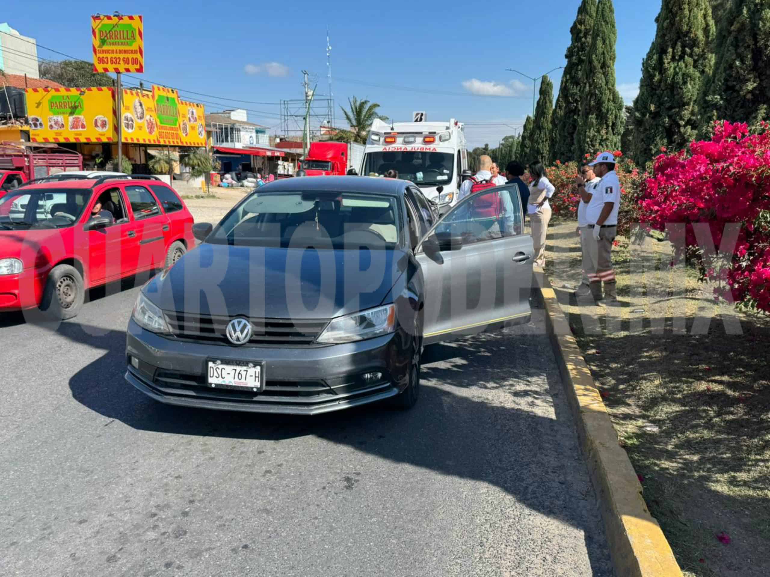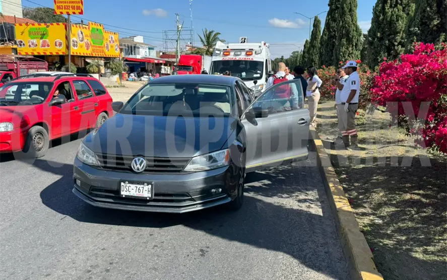 El choque entre un automovilista y un motociclista sobre el bulevar al sur de la ciudad de Comitán, ocurrido durante la tarde del martes, dejó daños materiales y congestionamiento vial.