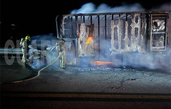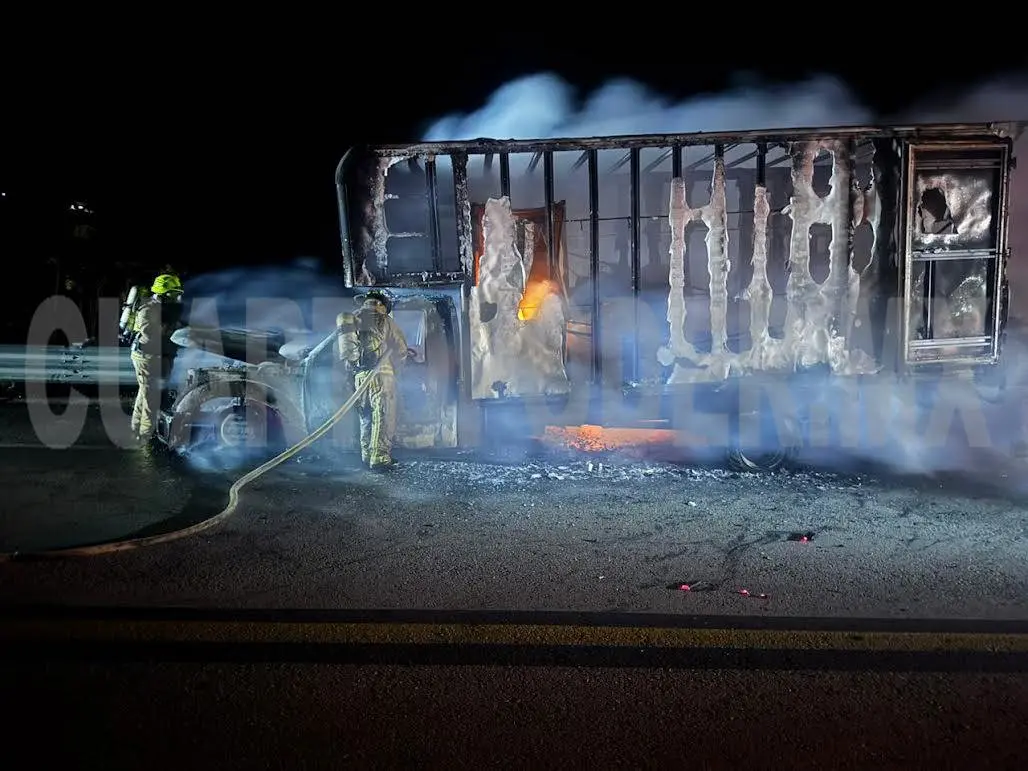 Un camión que transportaba línea blanca ardió en llamas sobre la carretera de cuota Chiapa de Corzo-San Cristóbal, a la altura del kilómetro 25.