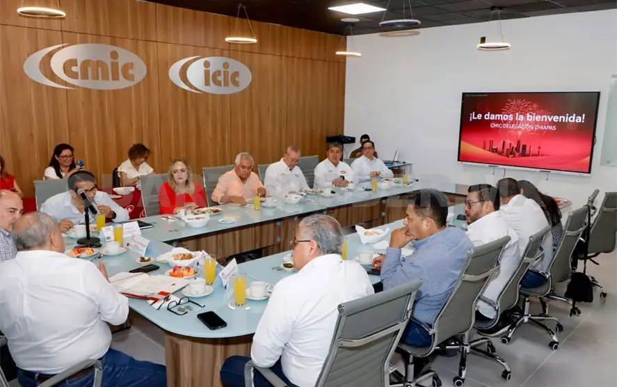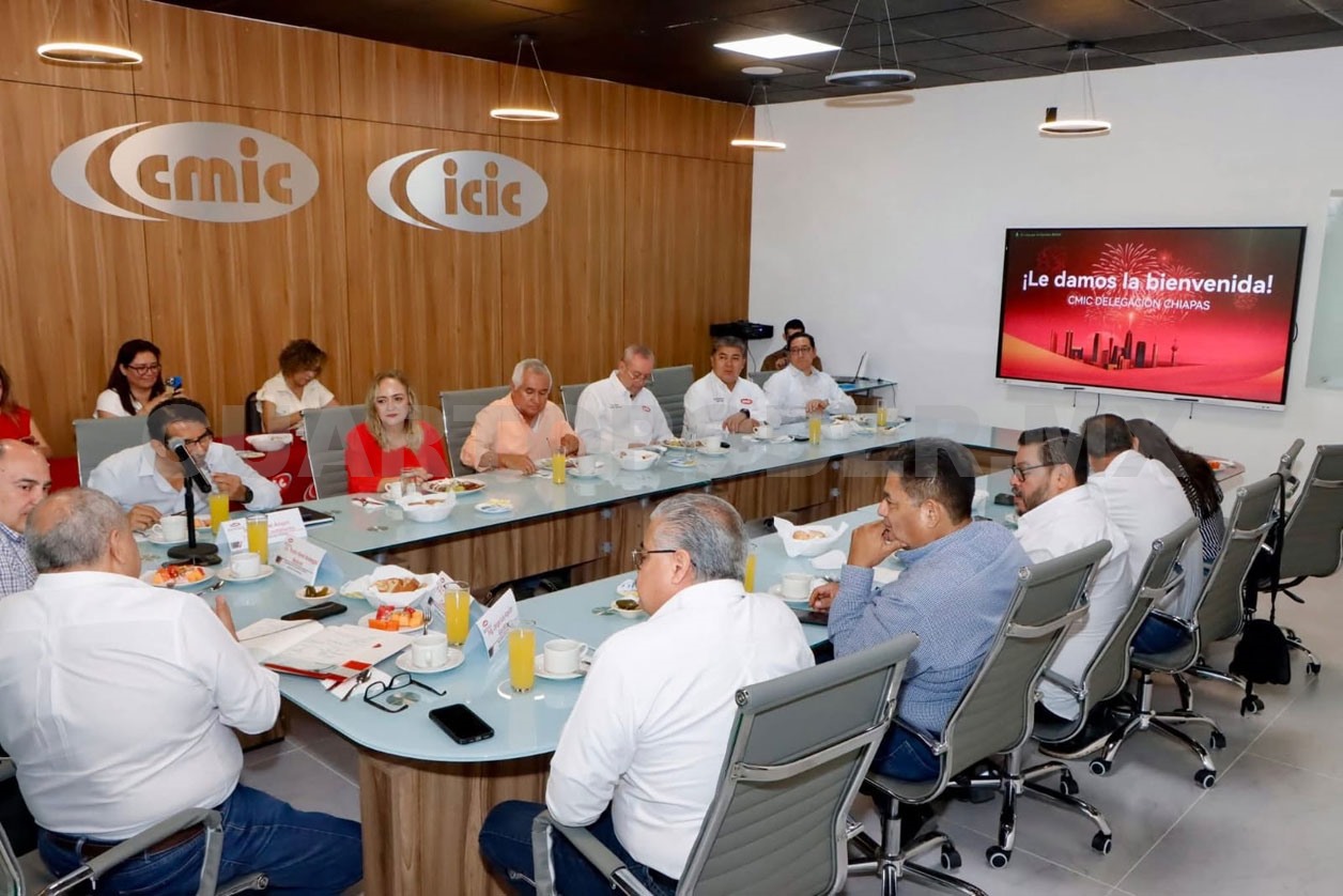 Con el objetivo de detonar el crecimiento económico de Chiapas a través del desarrollo de infraestructura, las y los afiliados de la Cámara Mexicana de la Industria de la Construcción (CMIC), delegación Chiapas, sostuvieron una reunión de trabajo con el subsecretario de Desarrollo Industrial y Atracción de Inversiones de la Secretaría de Economía y del Trabajo (SEyT), Pedro René Bodegas Neávez.