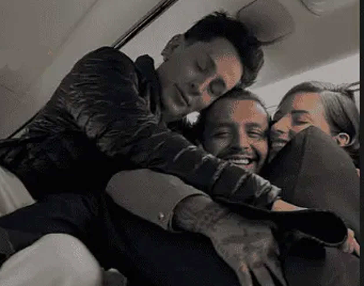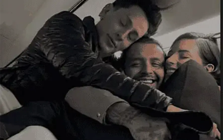 En la segunda foto aparecen los tres sonrientes y encimados en uno de los asientos del avión; Christian abraza a Ángela, quien también estuvo ausente en su canal de Whatsapp.
