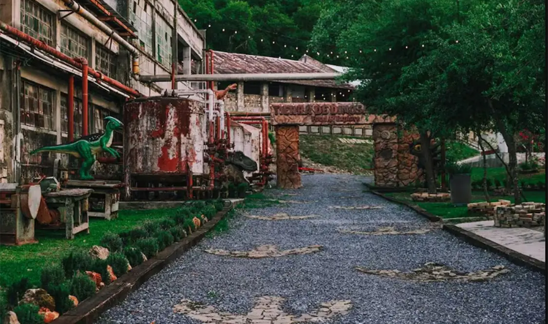 La Fábrica El Porvenir fue intervenida para la creación de Tierra de Dinosaurios, el nuevo museo temático de Nuevo León. Desde la entrada hay senderos con huellas, un arco de bienvenida con un huevo eclosionando, jardines y espacios al aire libre que recrean los paisajes de aquella era e incluso réplicas animatrónicas, entre las que figura un tiranosaurio rex de 25 metros de largo, uno de los más grandes de Latinoamérica.