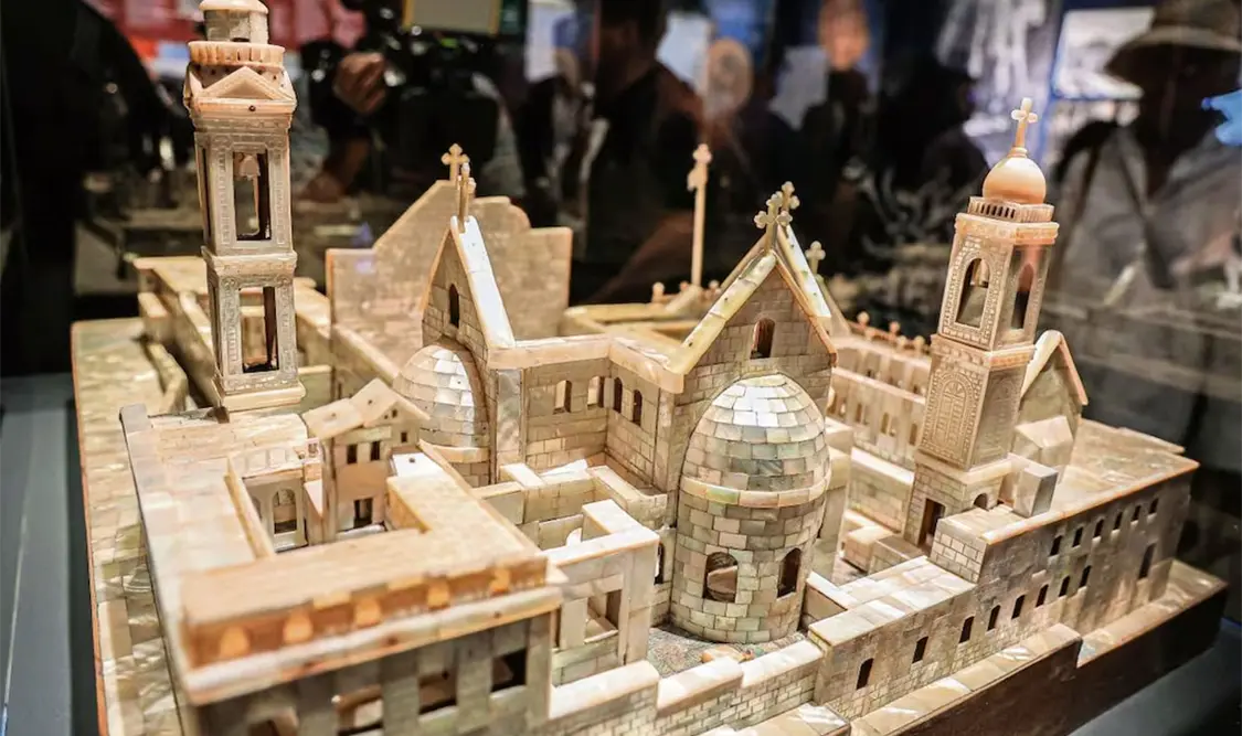 Además de fotografías y videos, la exhibición presenta una maqueta de la Basílica hecha con madreperla, vestidos típicos de Palestina, así como réplicas de los mosaicos bizantinos y lámparas de vidrio encontradas en las excavaciones arqueológicas. “Invito a todo el mundo, independientemente de sus filias y fobias políticas. No es una exposición sobre un país o un territorio, es una exposición sobre la historia de la humanidad”, concluyó Balaguer, quien destacó el posicionamiento de “no a la guerra” de España.