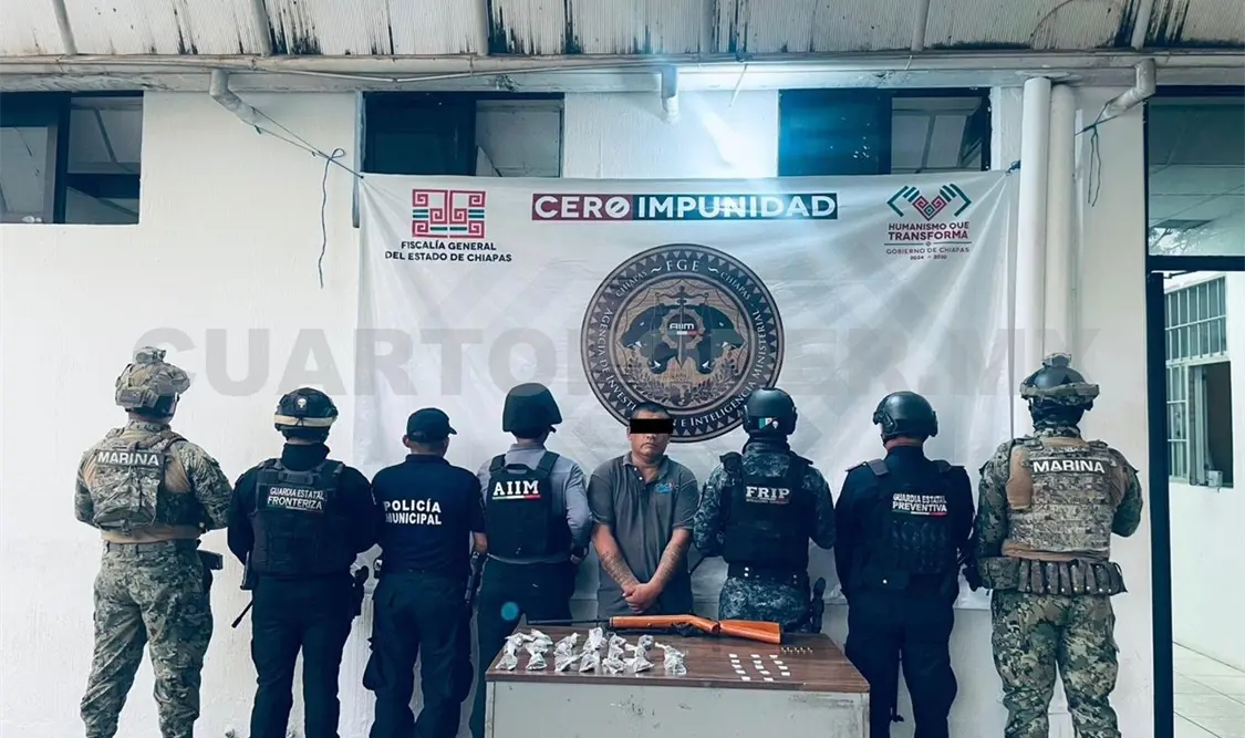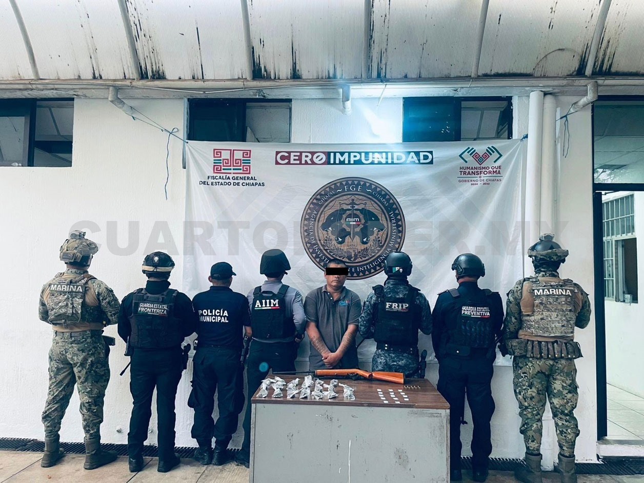 La Secretaría de Seguridad del Pueblo (SSP), a través de la Fuerza de Reacción Inmediata Pakal (FRIP), Guardia Estatal Preventiva (GEP), Guardia Estatal Fronteriza (GEF), lograron la detención de una persona del sexo masculino.